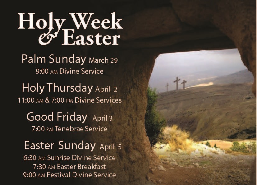 9:00 AM: Divine Service (first, third and fifth Sundays) with Holy Communion or Service of the Word (second and fourth Sundays)